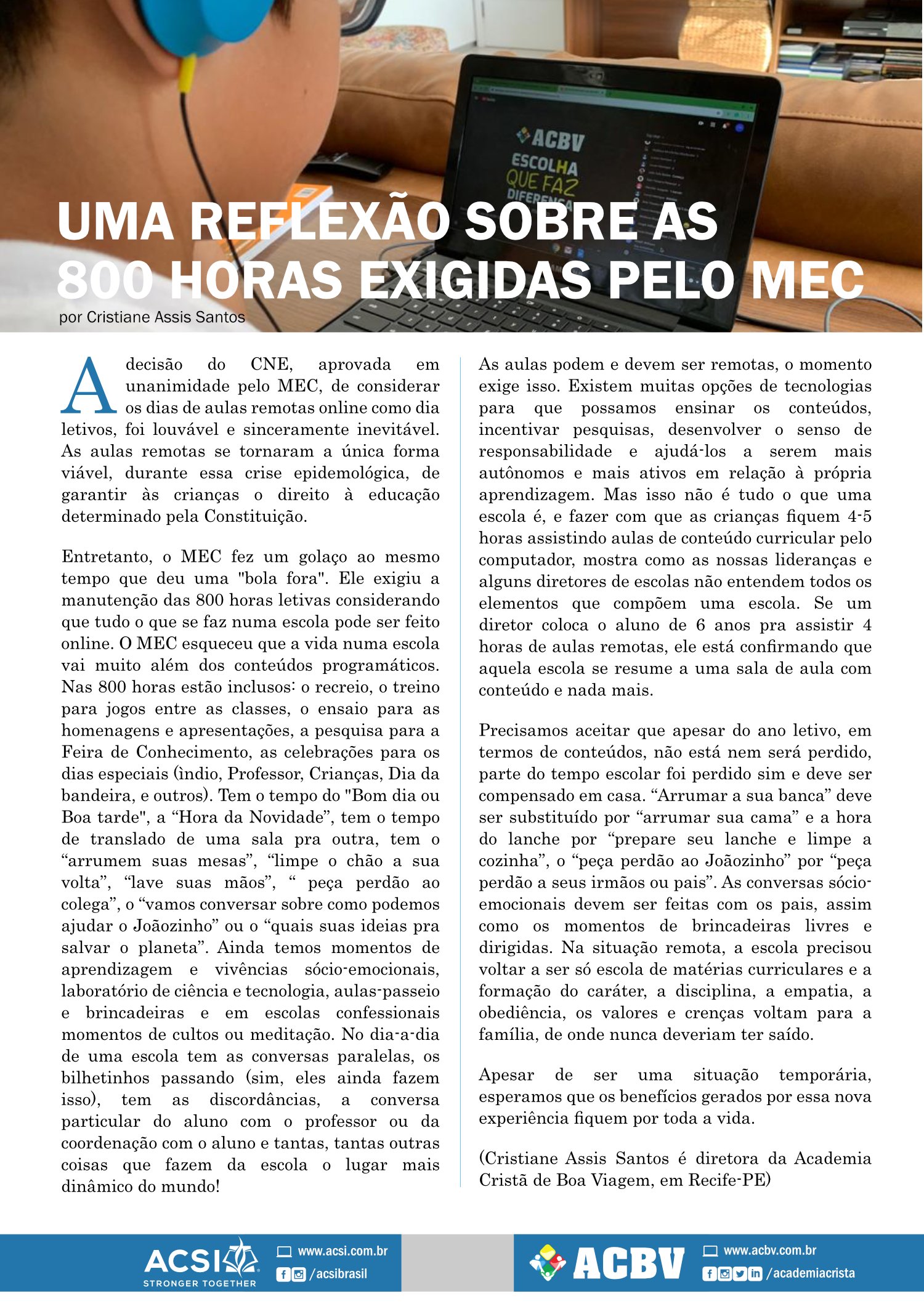 Uma reflexão sobre as 800 horas exigidas pelo MEC Destaque